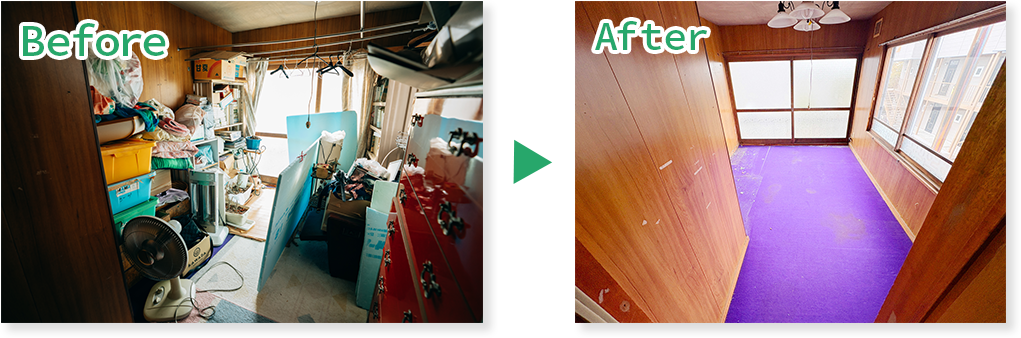 人件費(人工)を最適化することで、短期間での整理・処分を実現しました。また、粗大ごみを粗大ごみシールで廃棄することで廃棄代をトラック(2トン箱車)1台分削減しました。